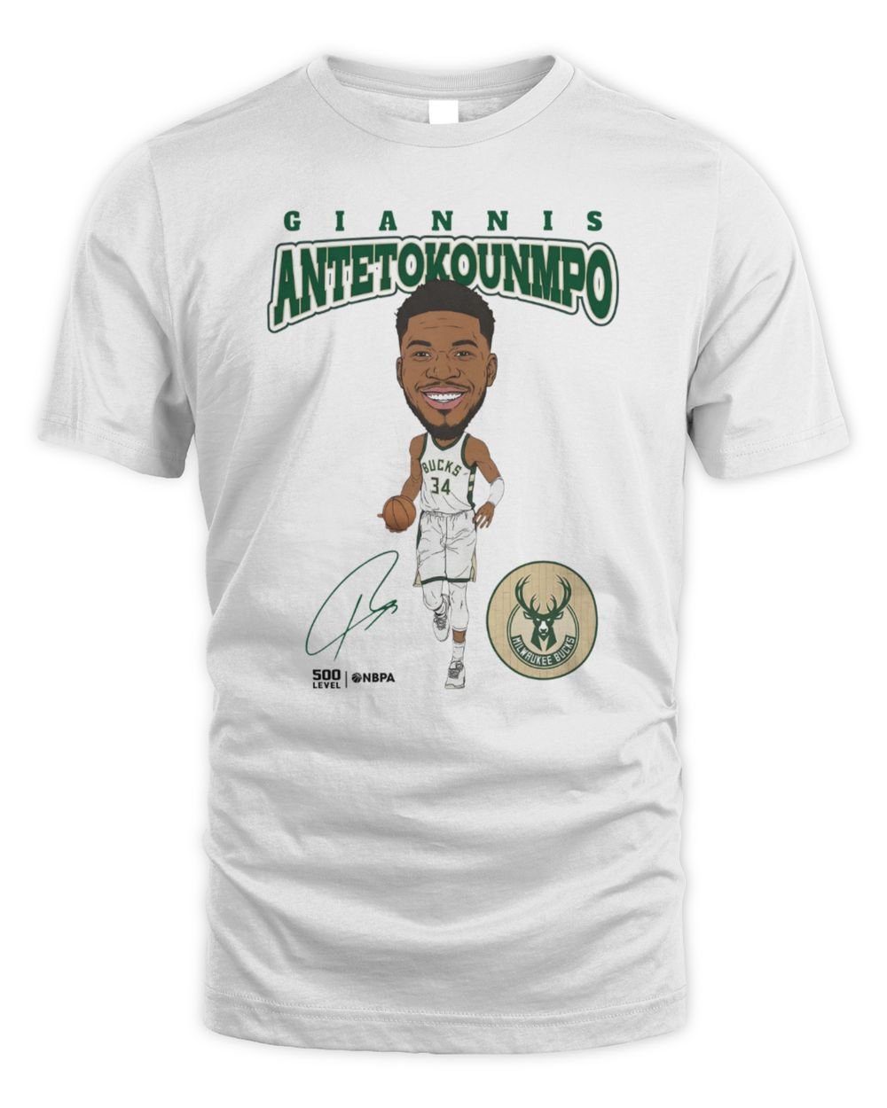 Giannis Antetokounmpo Milwaukee Bucks 500 Level Hardwood Comic T-Shirt